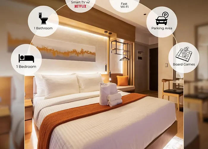 26m²のNear Venice Mall! Hotel 1Br Unit In Viceroy Residences マニラ市はボニファシオ グローバル シティから徒歩で25分に位置し、宿泊から4.8km離れたブエンディア鉄道駅へ行きやすいです。 アパートではWiFiを利用できますし、車でお越しのお客様のために駐車場もあります。